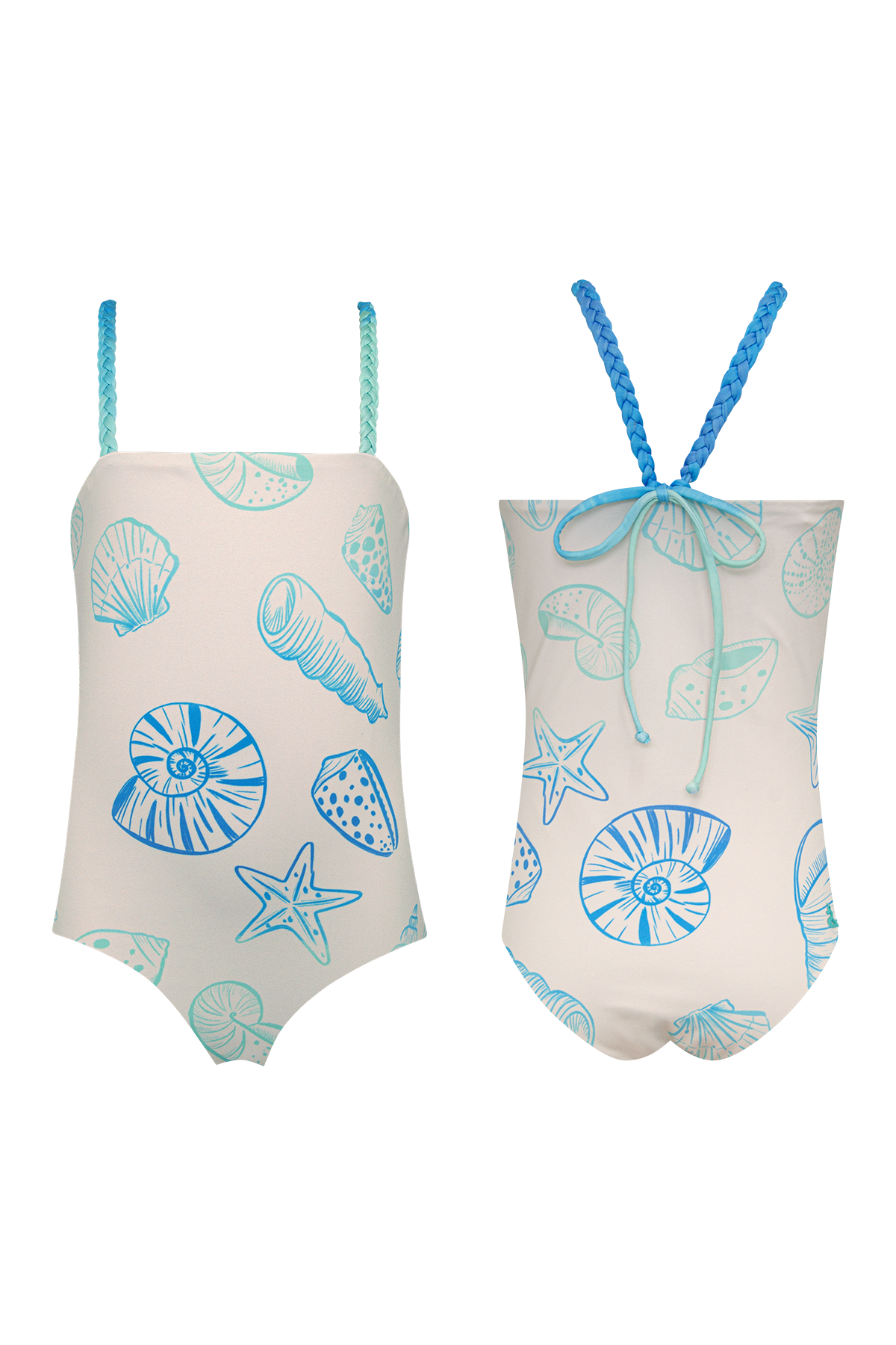 Nuevo vestido de baño de una pieza para niña, con un diseño clásico de tirantes dobles en V trenzados que se cruzan en la espalda y le añaden un toque náutico. La silueta es cómoda y perfecta para la diversión en el agua.