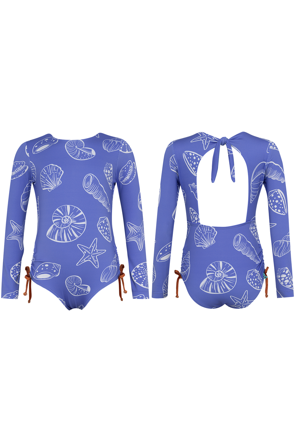 Vestido de baño enterizo manga larga de recogidos en las piernas. La tela tiene factor de protección UPF50+ lo que quiere decir que actua como un escudo protector contra los rayos UV del sol. Hecho en Colombia