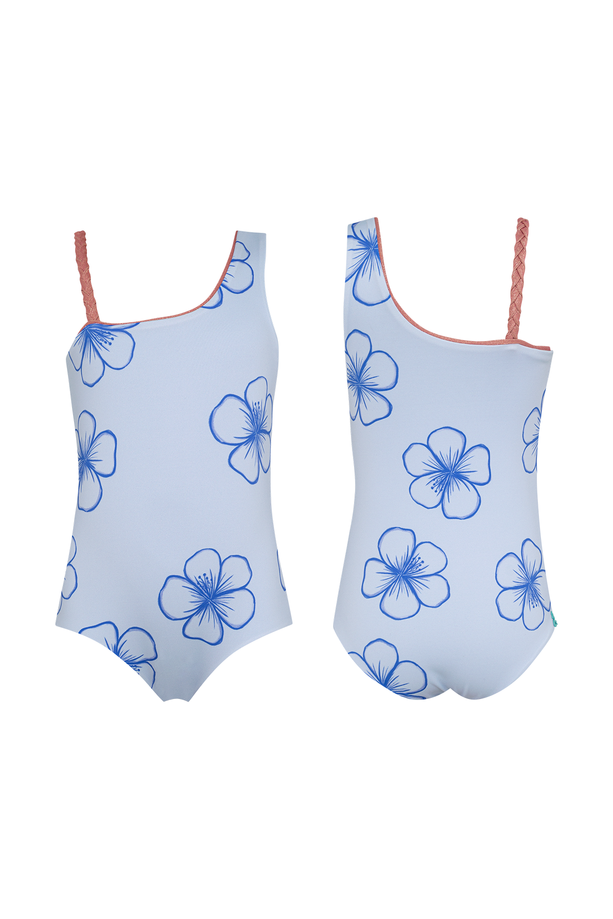 Te presentamos un nuevo y original vestido de baño de una pieza para niña. El diseño asimétrico de un solo hombro, combinado con una tiranta, es un un diseño divertido y diferente, ideal para jugar y moverse sin límites.