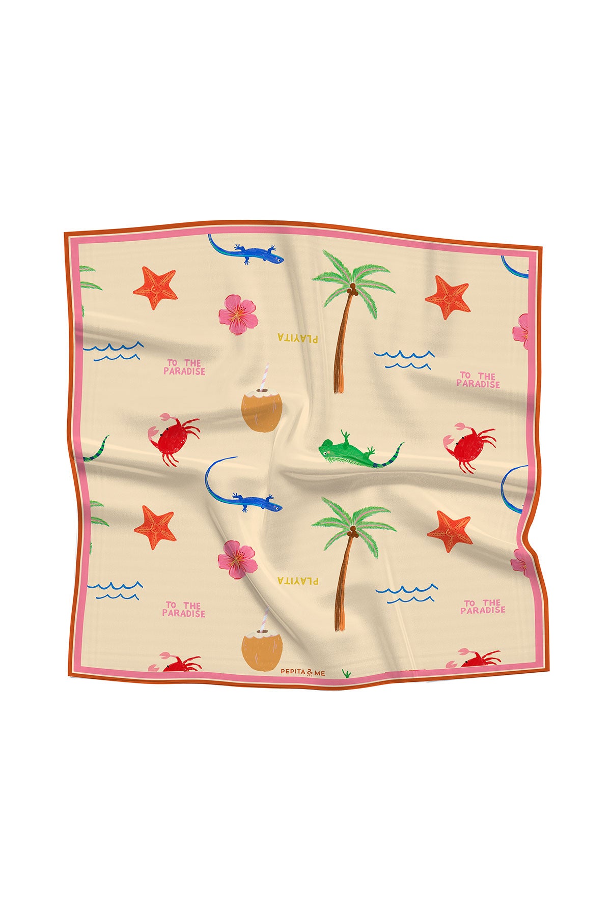 Pañoleta cuadrada diseñada para niños. Mide 68 cm x 68 cm y está hecha en una tela ligera y suave, con bordes bien terminados. Fácil de usar alrededor del cuello, la cabeza o como un pequeño accesorio.