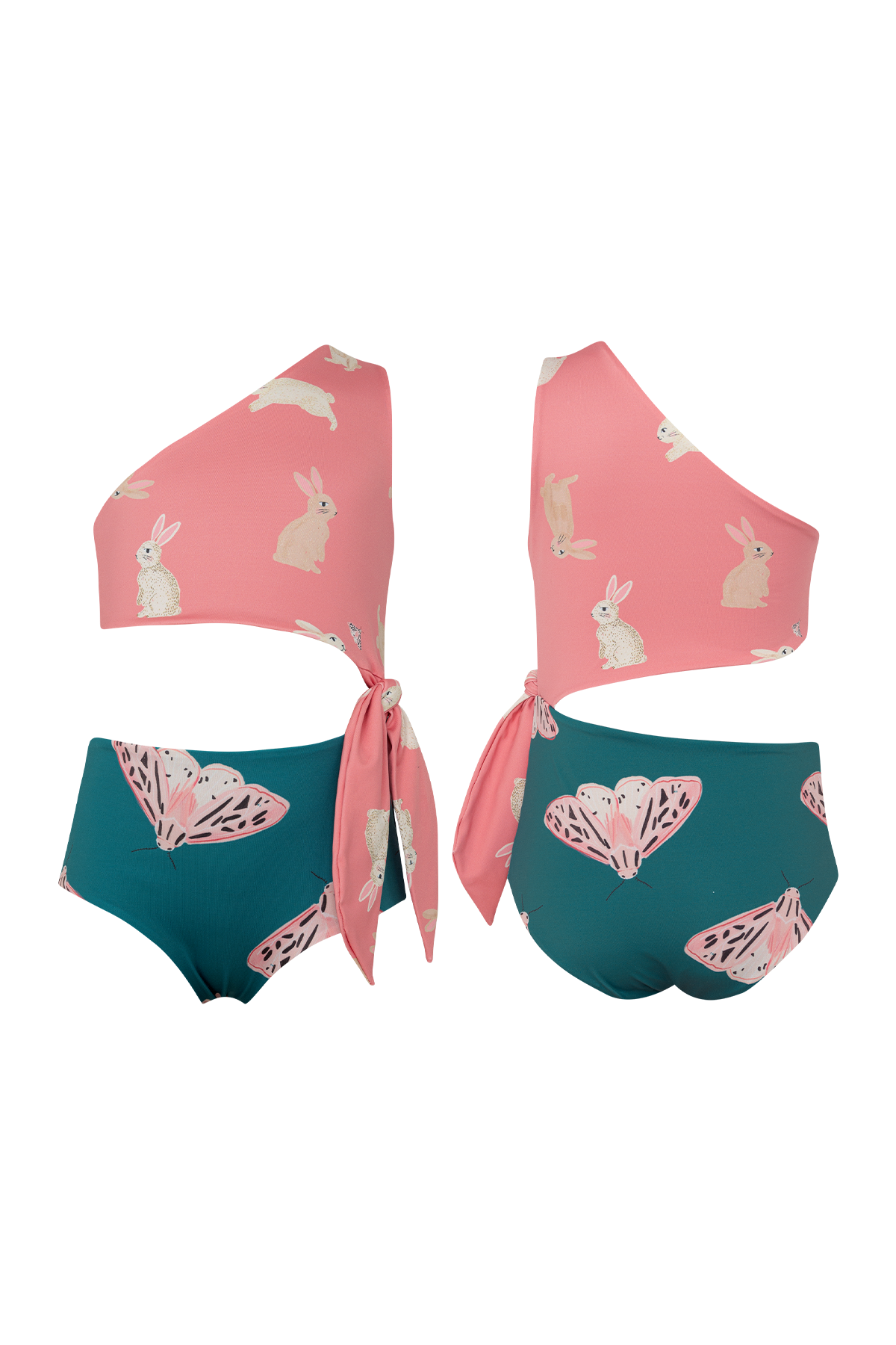 Conejos rosado es un vestido de baño de una pieza diseñado para destacar con estilo y comodidad en los días de verano. Su silueta moderna presenta un hombro descubierto y un corte asimétrico en la cintura que realza la figura y aporta un toque sofisticado y juvenil. Confeccionado en tela de alta calidad, este traje de baño es suave al tacto, cómodo de llevar y perfecto para disfrutar tanto en la playa como en la piscina.