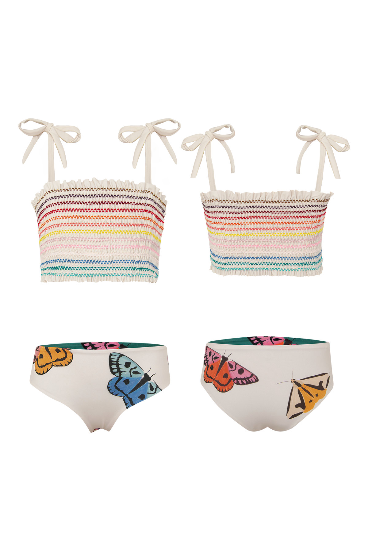 Confeccionado en tela tipo waffle de alta calidad, el bikini polilla arcoiris crudo es suave al tacto, resistente y de gran durabilidad, garantizando que acompañe a las niñas en sus momentos de juego y aventura sin perder su forma ni su encanto. Su textura diferencial y su diseño exclusivo hacen de polilla arcoiris crudo una prenda que se destaca en la moda infantil de playa, brindando comodidad y estilo en cada detalle.
