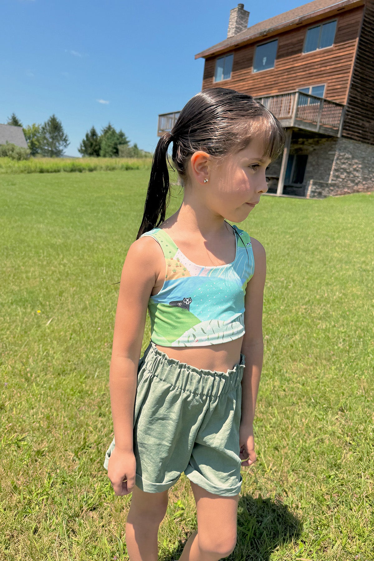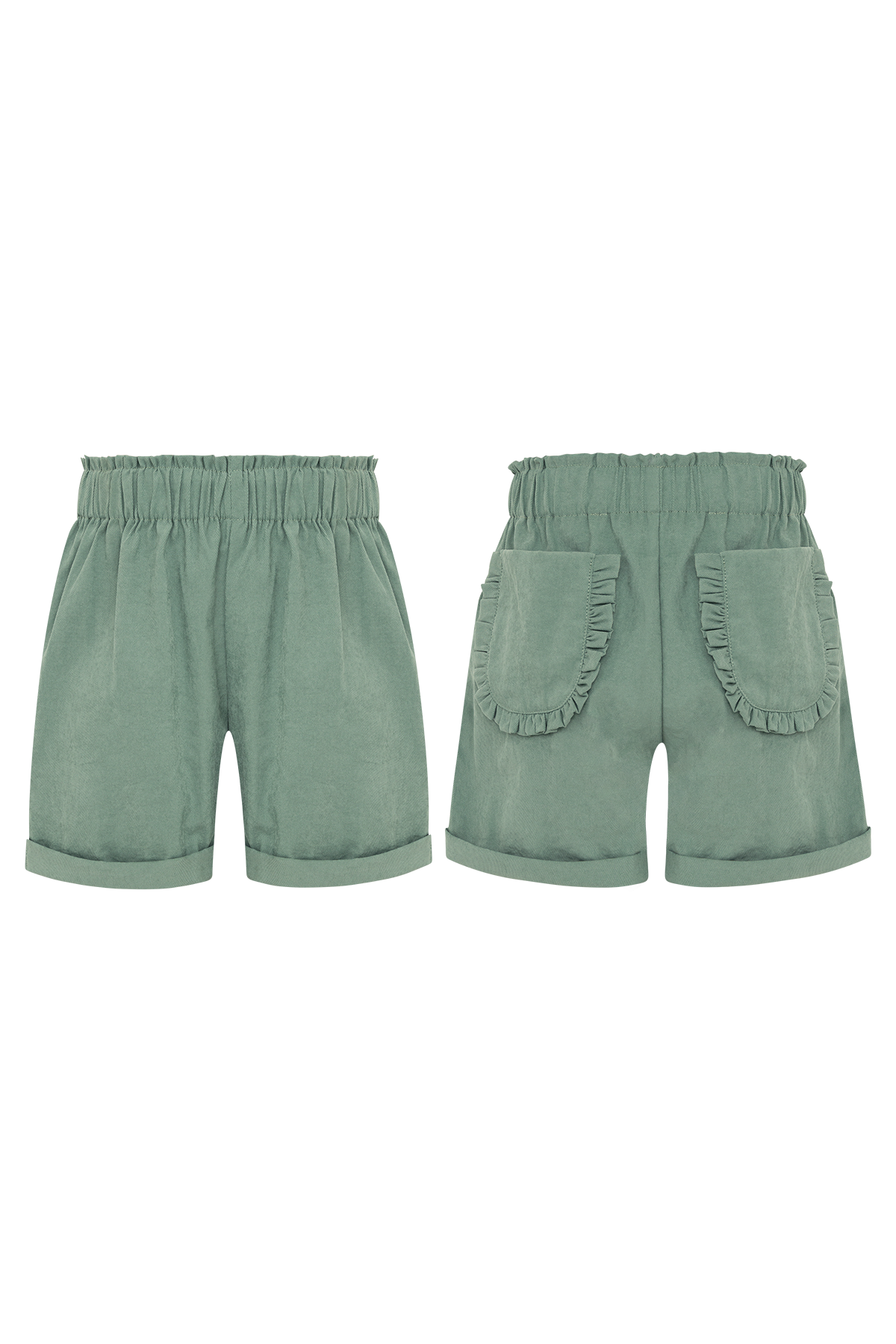 Short infantil de corte ancho confeccionado en tela extra suave y ligera, ideal para garantizar libertad de movimiento y comodidad durante todo el día. Cuenta con dos bolsillos traseros decorados con arandela alrededor y cintura encauchada que se ajusta perfectamente sin apretar. Diseño versátil que combina fácilmente con camisetas, sacos o mejor aún con nuestros bikinis y vestidos de baño. Perfecto para uso diario, colegio, viajes o actividades al aire libre.