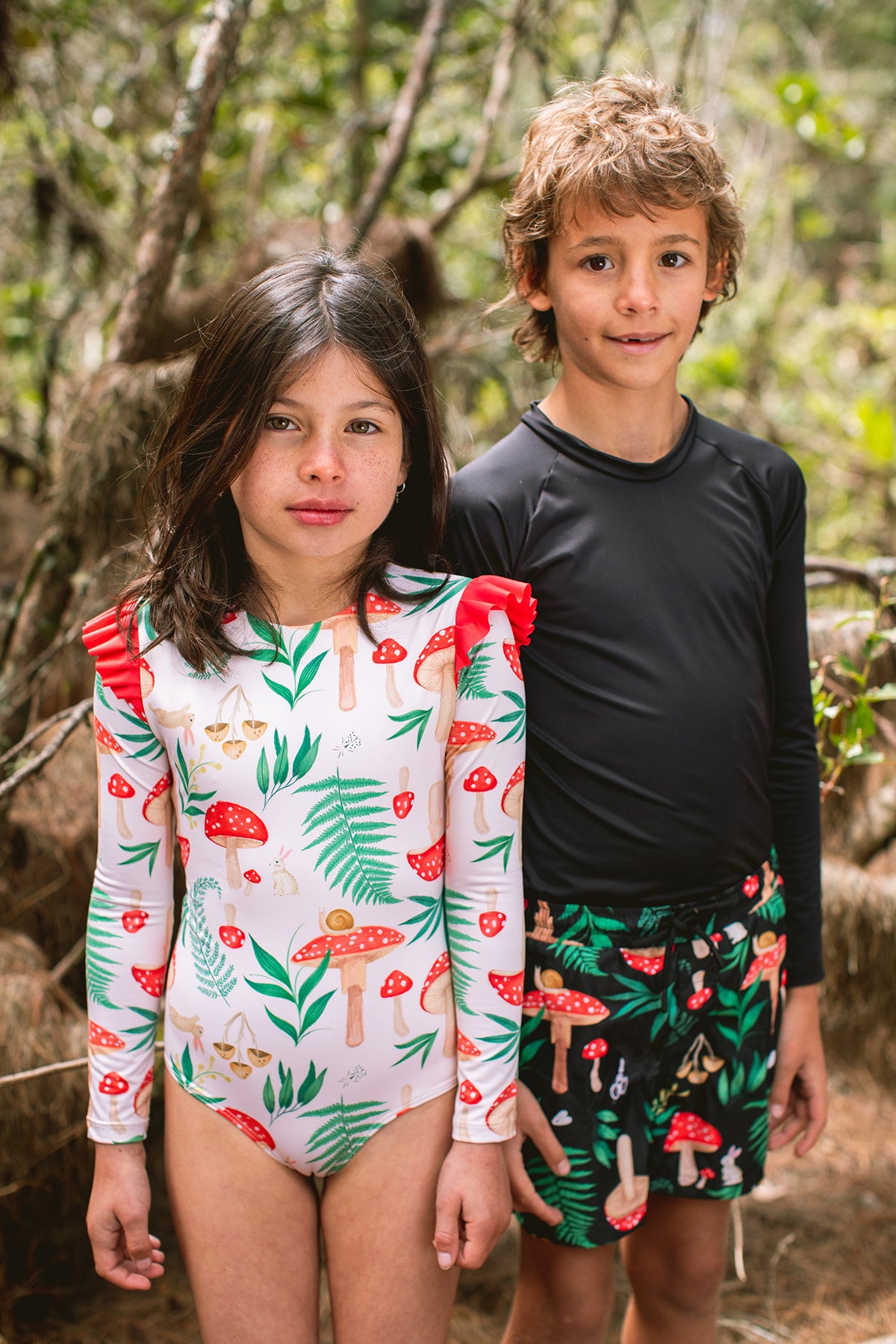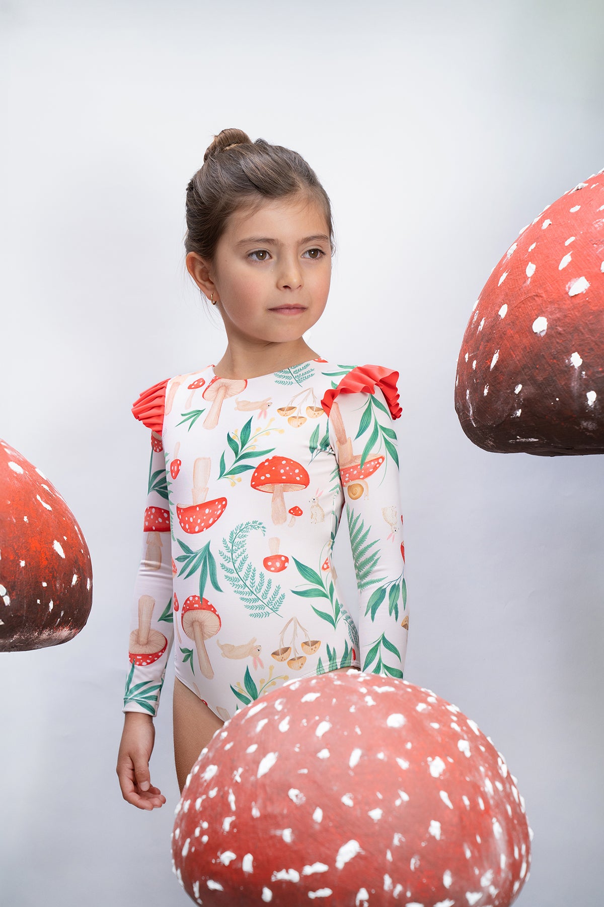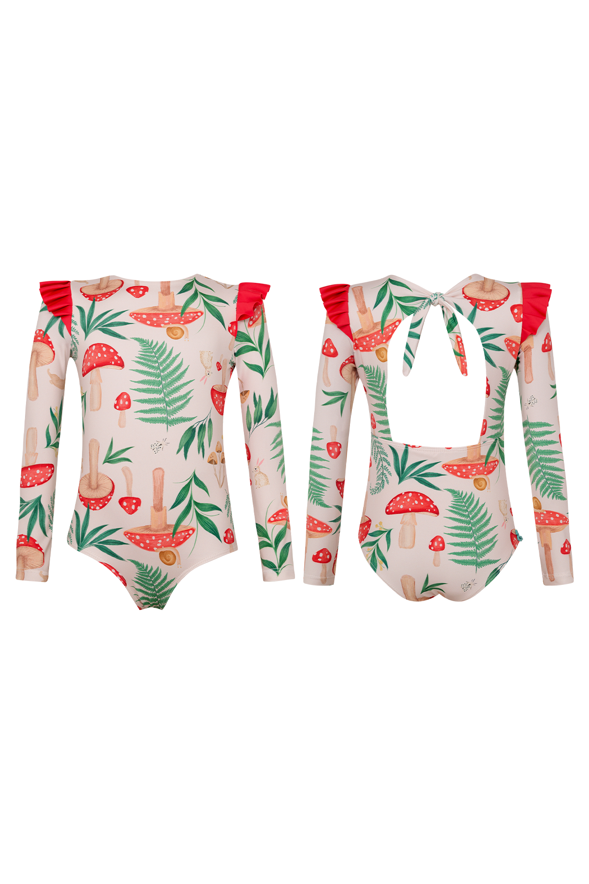 Vestido de baño enterizo manga larga para protección del sol con arandela en los hombros. La tela tiene factor de protección UPF50+ lo que quiere decir que actua como un escudo protector contra los rayos UV del sol. Hecho en Colombia