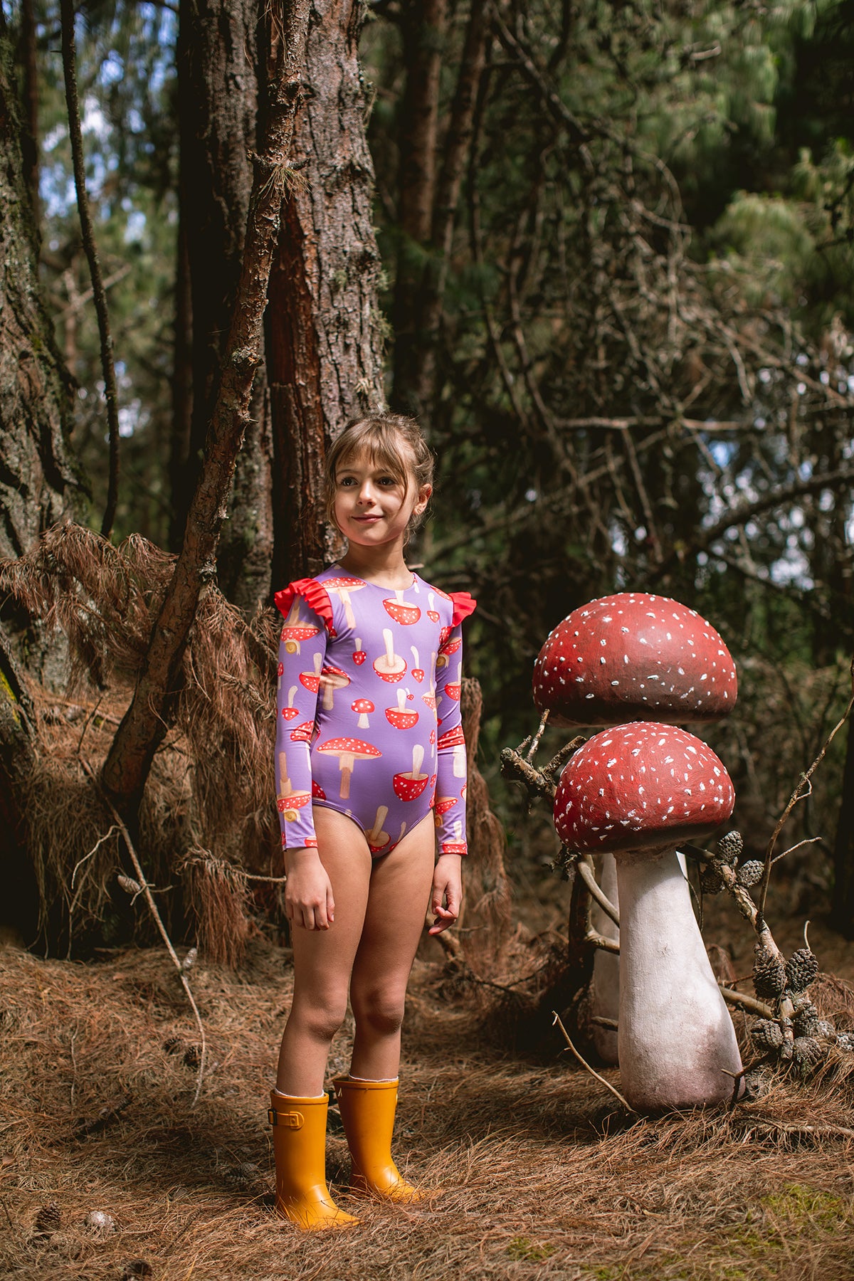 HONGOS MORADO - WINGS LONGSLEEVE - Vestido de baño enterizo manga larga para protección del sol con arandela en los hombros. La tela tiene factor de protección UPF50+ lo que quiere decir que actua como un escudo protector contra los rayos UV del sol. Hecho en Colombia